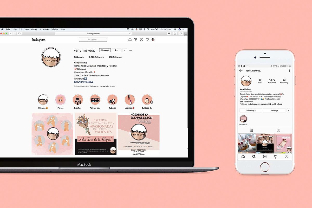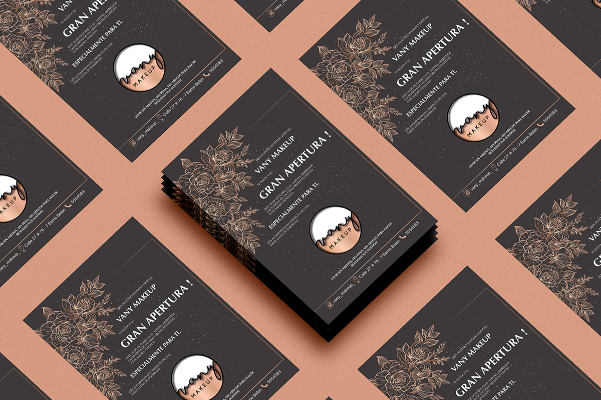 To create a logo and collateral for makeup brand Vany a fresh, modern, feminine brand.