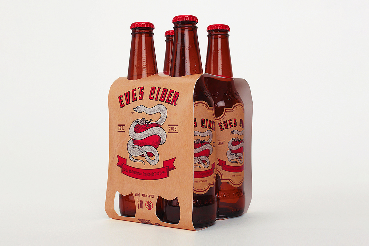 Playing on the biblical story of Adam and Eve for the brand name and logo. This design uses a hand rendered crosshatch illustration, old fashioned type and motifs to deliver a rustic design that matches the the theme of the brand.