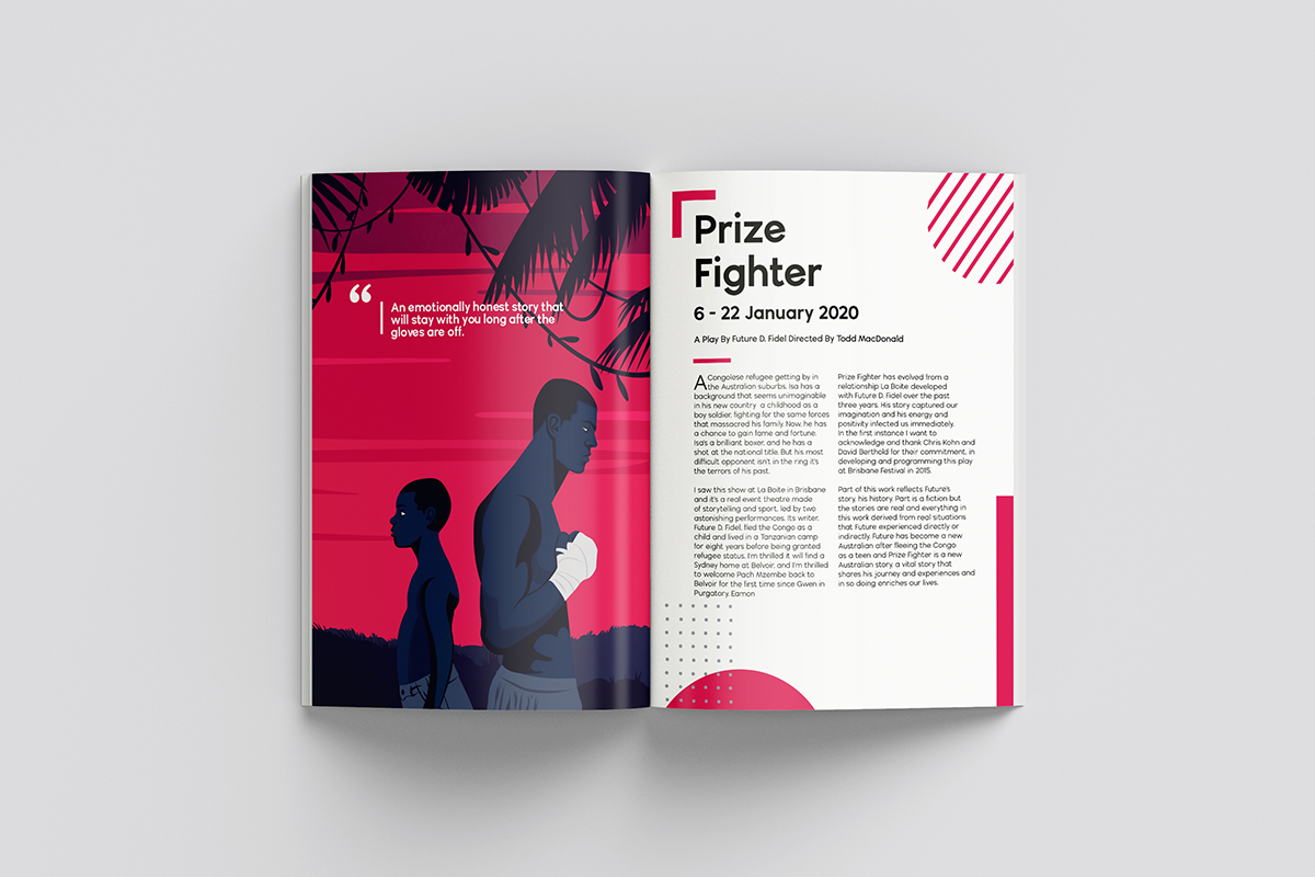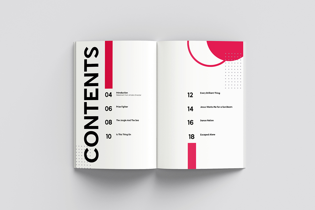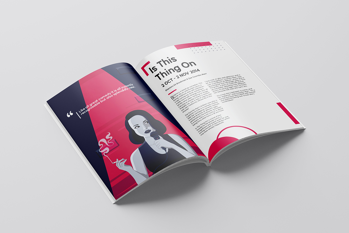 I've taken a minimalist approach with the logo design. I've also used vibrant colours and a contemporary digital illustration style in the posters and theatre guide booklet to give the brand a youthful and modern feel.